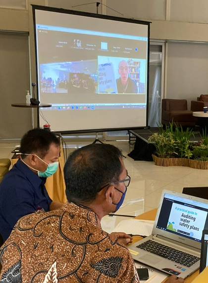 Staff working in public and environmental health, laboratories, legal bureau, planning, academia, and water safety specialists at the national and subnational government levels and donor agencies participated in this workshop. Darryl Jackson, a WSP expert, facilitated the workshop along with technical officers from WHO Indonesia, MoH staff and WSP practitioners from the Malang water provider.