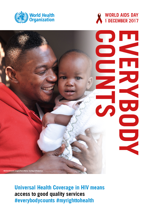 To complement the global World AIDS Day 2017 campaign which promotes the theme "Right to health", the World Health Organization will highlight the need for all 36.7 million people living with HIV and those who are vulnerable and affected by the epidemic, to reach the goal of universal health coverage.