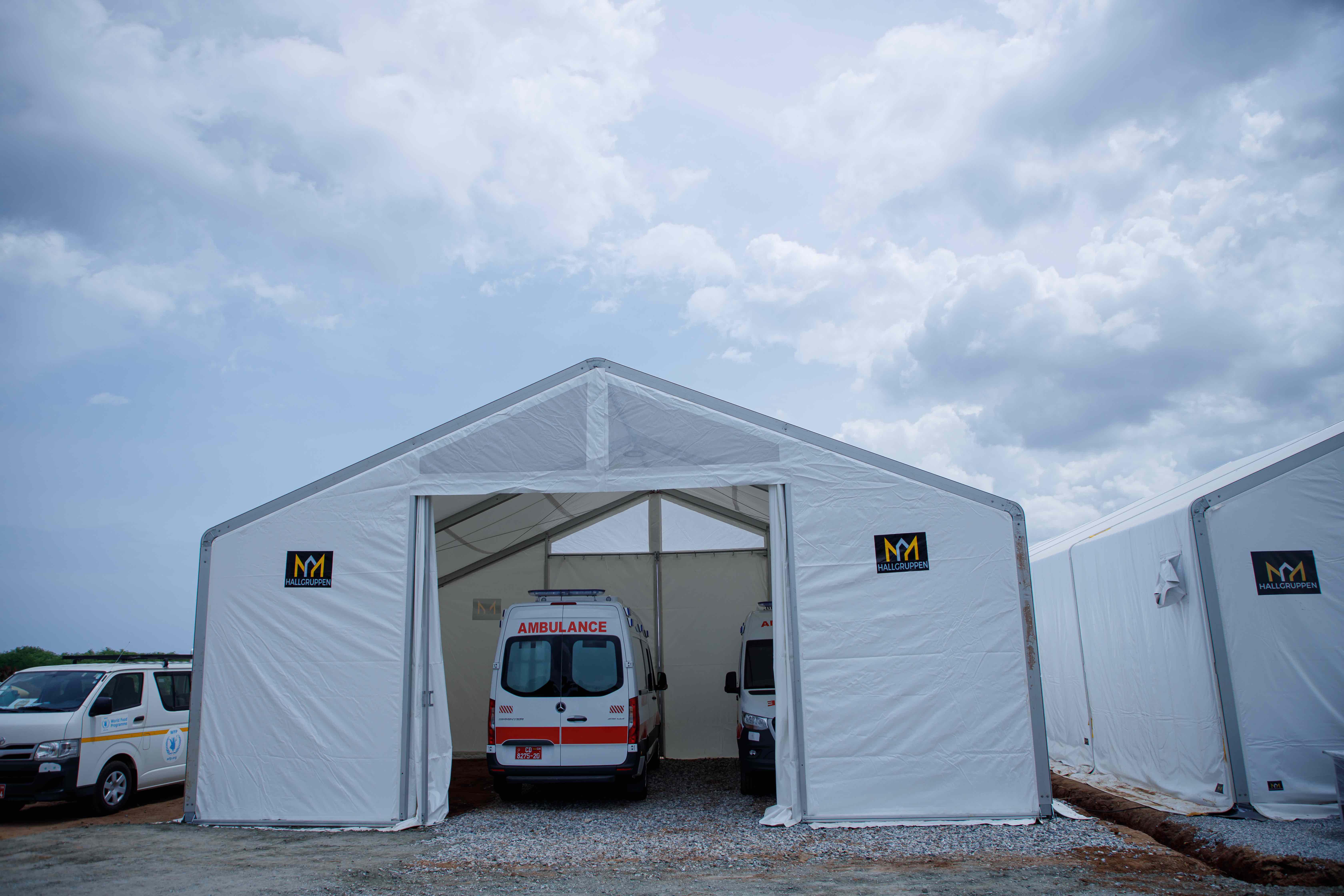 A Field Hospital in Ghana, managed by WFP staff to care for humanitarian workers who may contract COVID-19 in the course of duty. Facilities like this will be turned over to the Government, including generators, pre-fabricated offices, and mobile ambulances. ©WFP/2020/Michael Dakwa