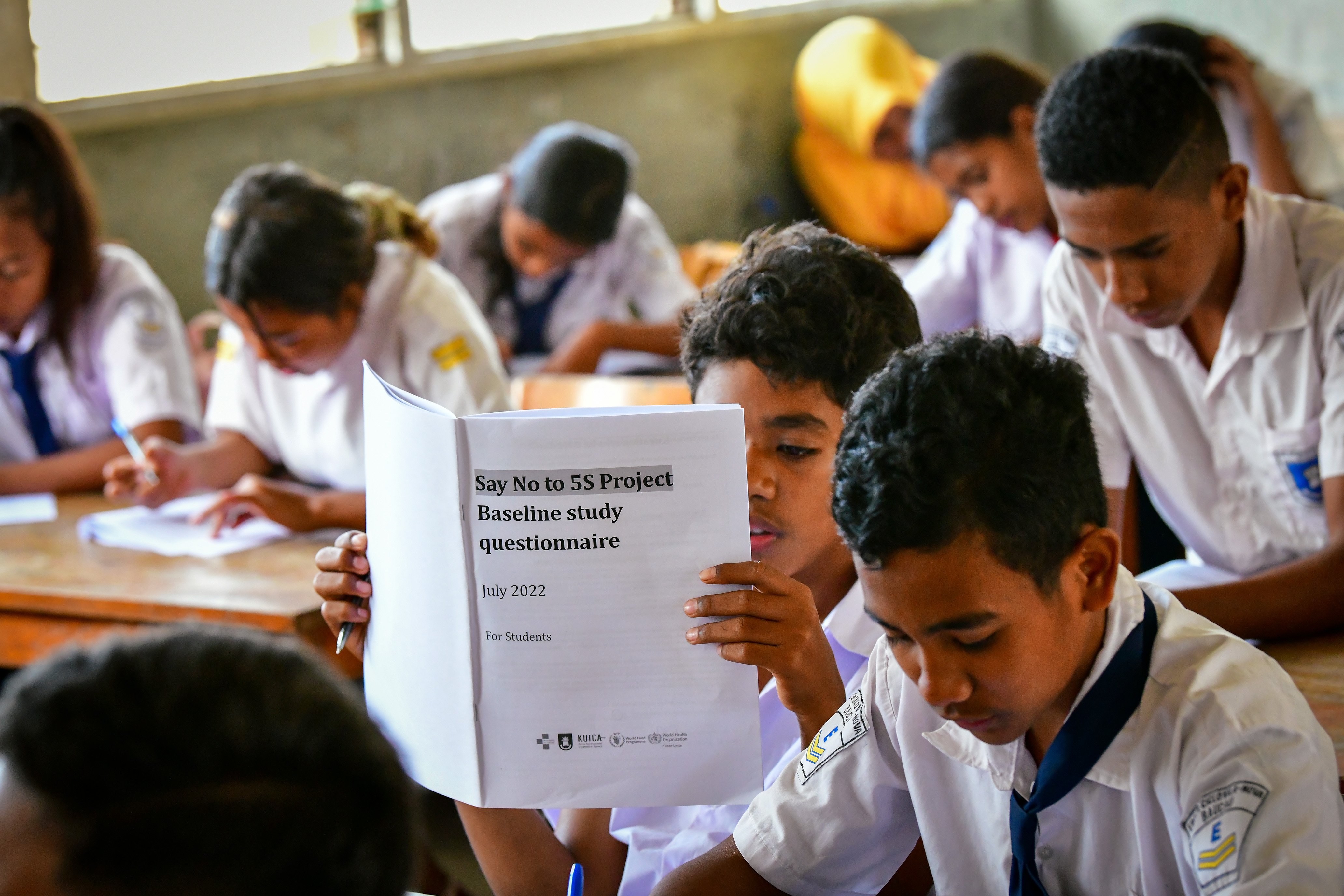 To put focus on the health and nutrition of the children, the World Health Organization, along with the Ministry of Health and Ministry of Education, Youth and Sports and the WFP in Timor-Leste launched the Say No To 5S project targeting Starvation, Soil-Transmitted Helminthiasis, Skin Diseases, Smoking & Sugary/Alcoholic Drinks on 8 March 2022. The Korea International Cooperation Agency (KOICA) has provided a generous donation of US$ 7.8 million for the project that will go on till 2025.